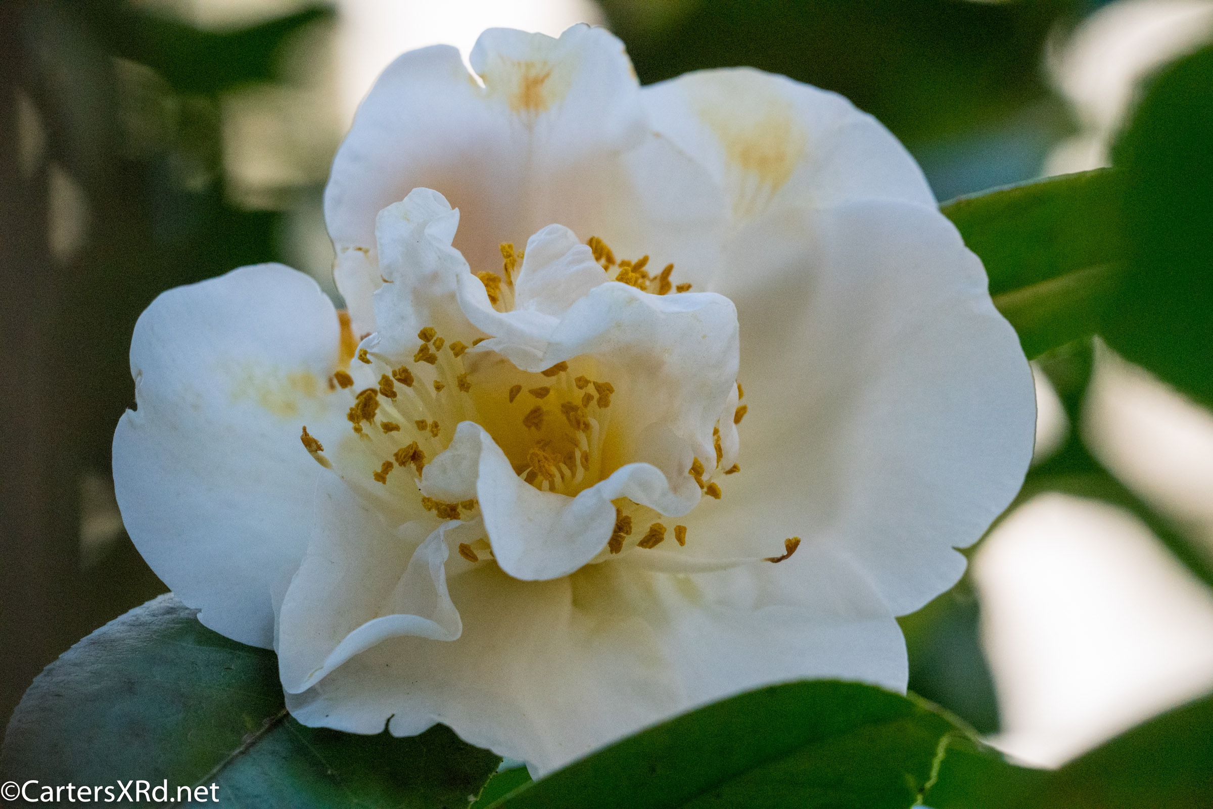 It’s from this week, not the archive. In the confused plant world of spring for a few days followed by hard freezes, one of the camellias has managed to pop a proper blossom or two.