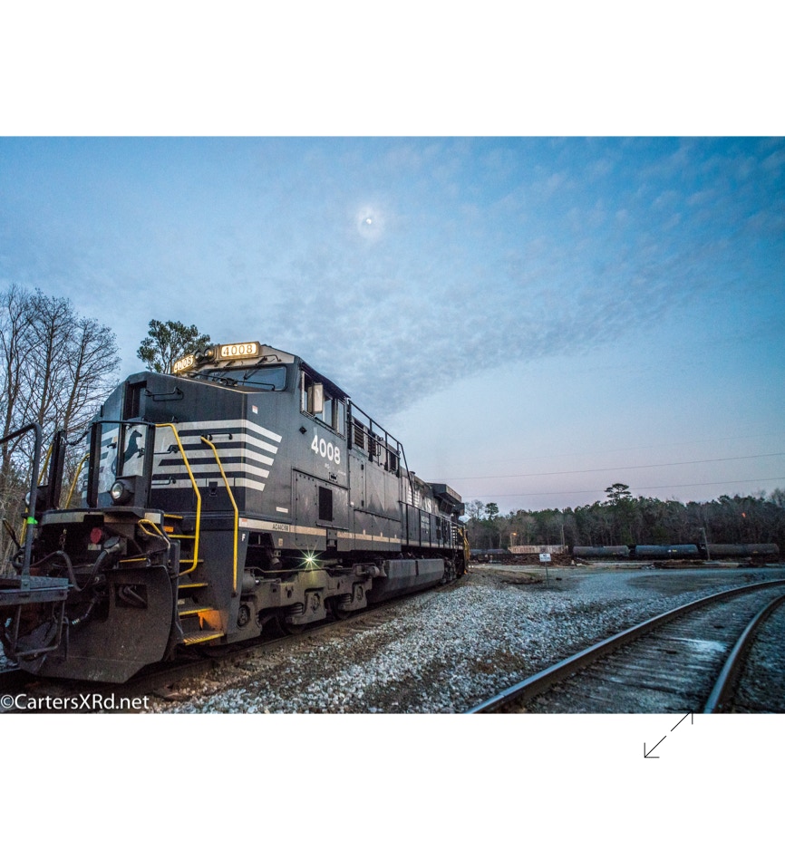 My train chasing was confined to Beaufort County this week. I caught a Norfolk Southern E52 going to Aurora pulled by a nice Union Pacific unit. I also tried out the new telephoto on a couple of freights around Marsden Yard. The only thing out of town this week was the old Norfolk Southern station in Cove City. Week 3 was January 13-19.