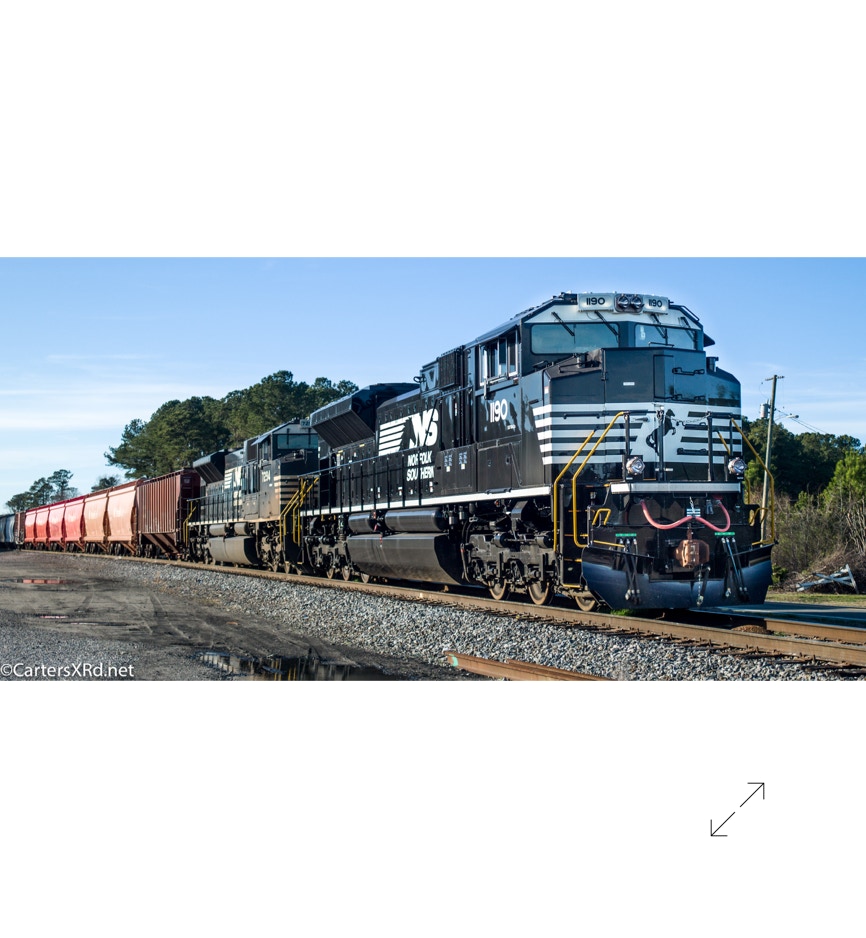 Didn’t chase a lot of trains during the ninth week of 2019, but did see a few. Locomotives from Raleigh, Selma, and Chocowinity are included in this set. Of special note is this super-clean, fresh paint job on a SD70ACe, Norfolk Southern 1190. Week 09 was February 24-March 2. There were a few leased Union Pacifics running around also.
