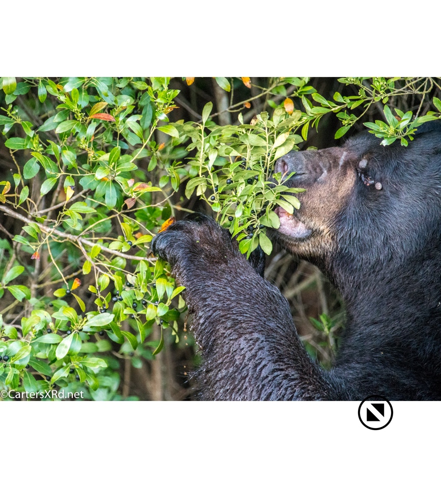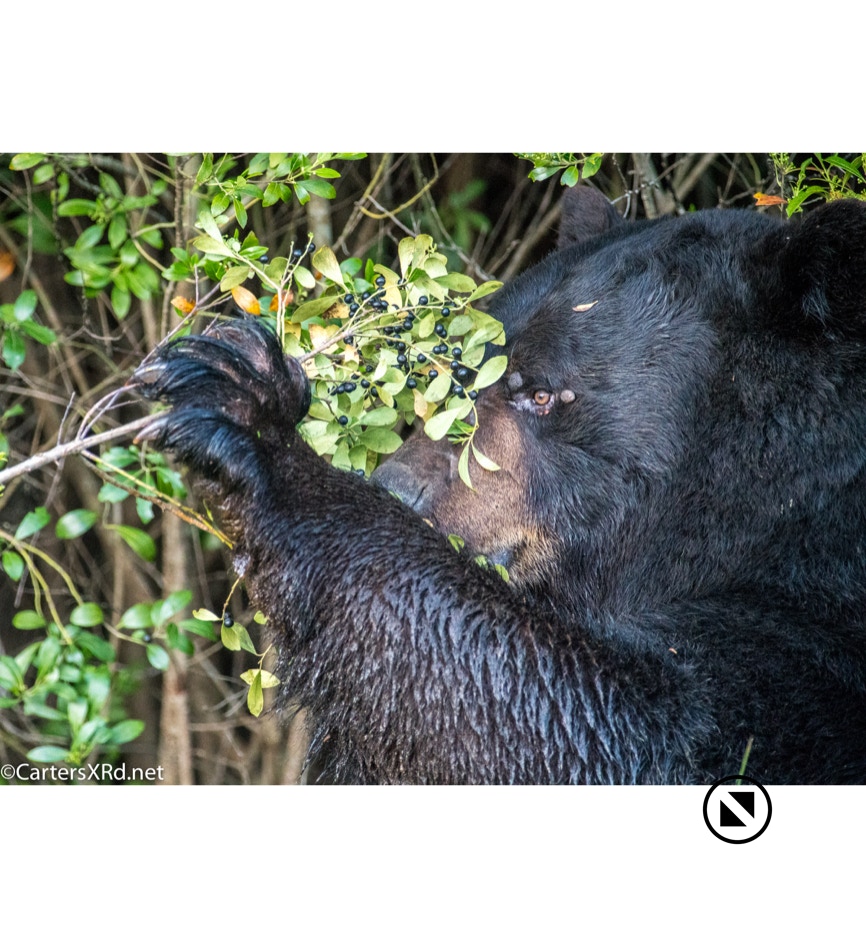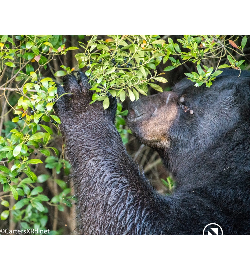 Returning from Nags Head yesterday, I took the slow boat home. That’s what Kitty and I call it when I’m coming home from somewhere and take my time on sidetracks and staying open to stopping to take pictures. Yesterday’s slow boat got me a wonderful encounter with a HUGE bear in Dare County. This old fellow was browsing the roadside for grass and berries. It’s pretty apparent that this old fellow has seen his share of tough confrontations including at least one tagging. He seemed little concerned by me or my orange car (which I STAYED inside). I’m still excited.
