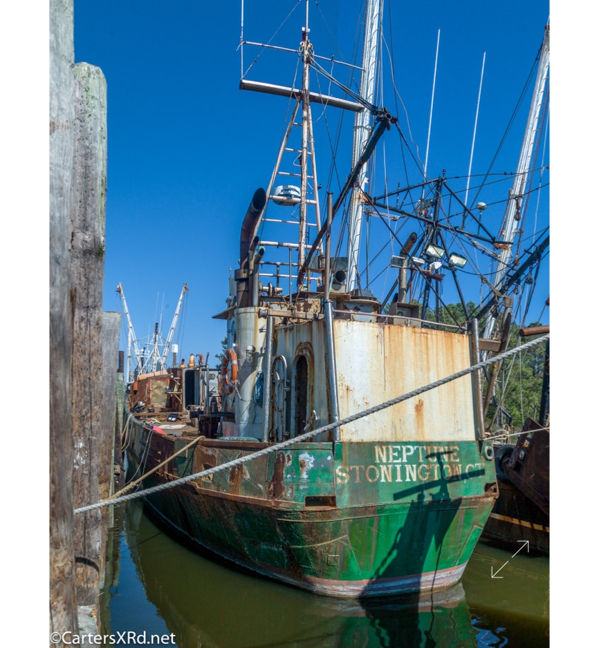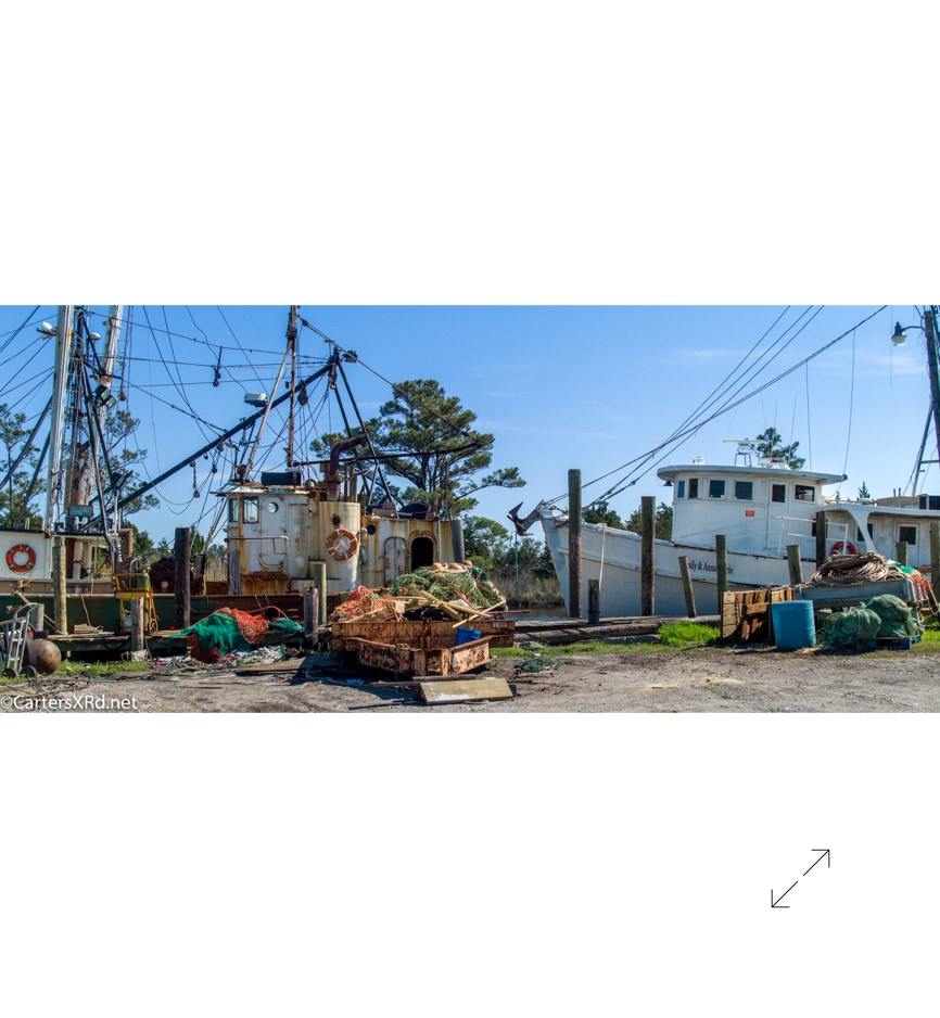 These shots are in Hyde County’s Swan Quarter, Oyster Creek Landing, and Rose Bay. The Swan Quarter harbor seems busy with scrapping, repairing, and working boats. Week 14 was March 31-April 6.