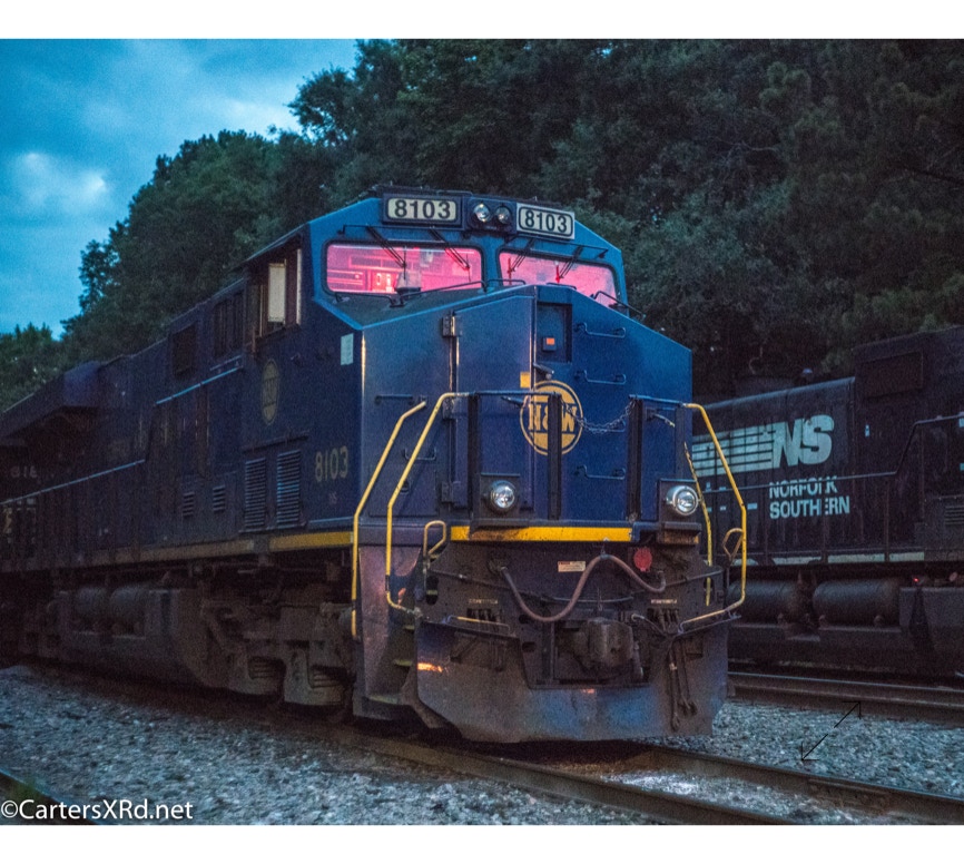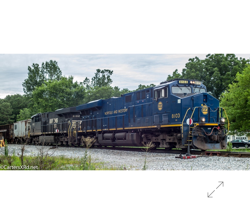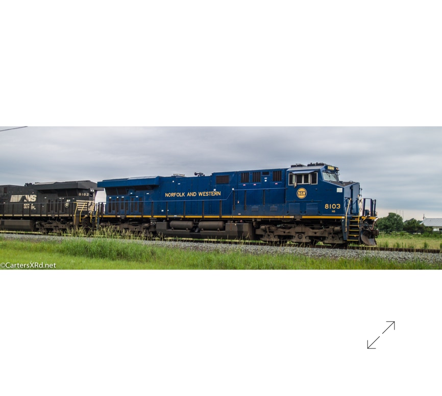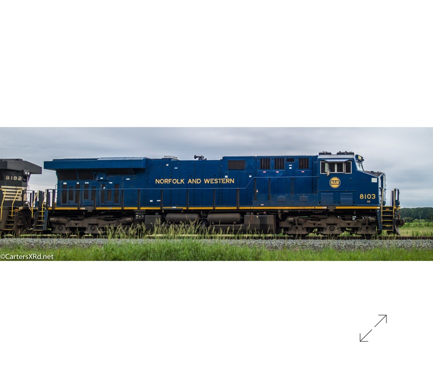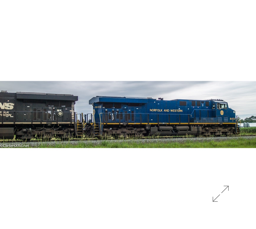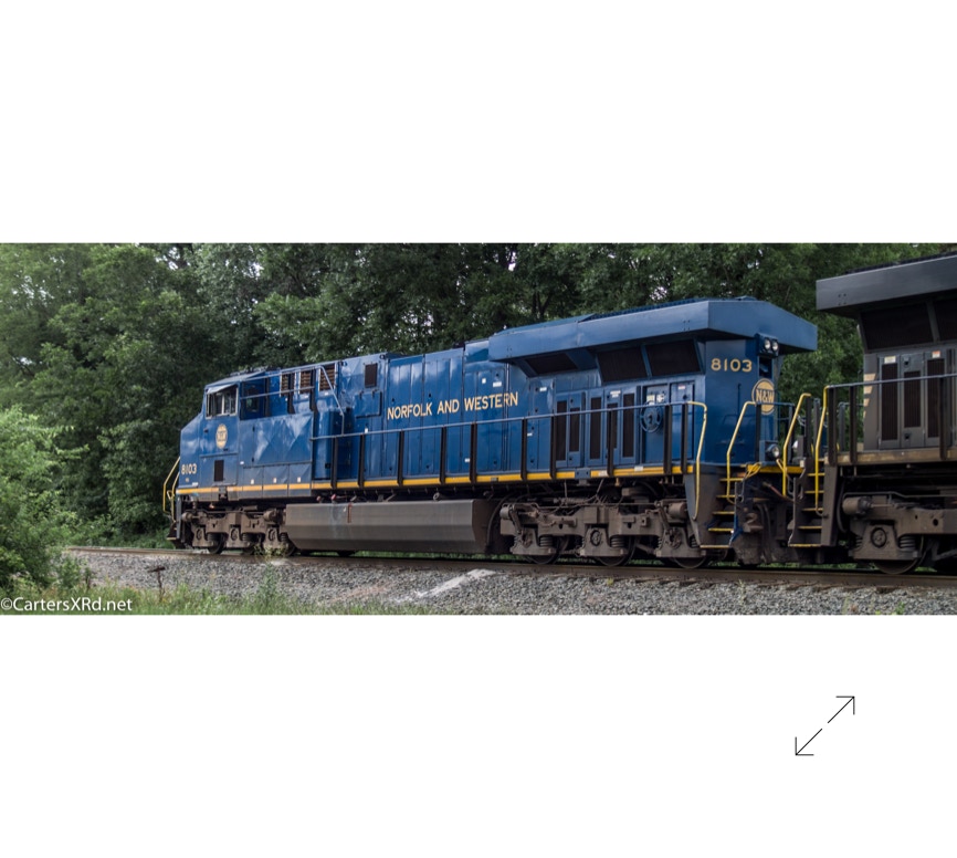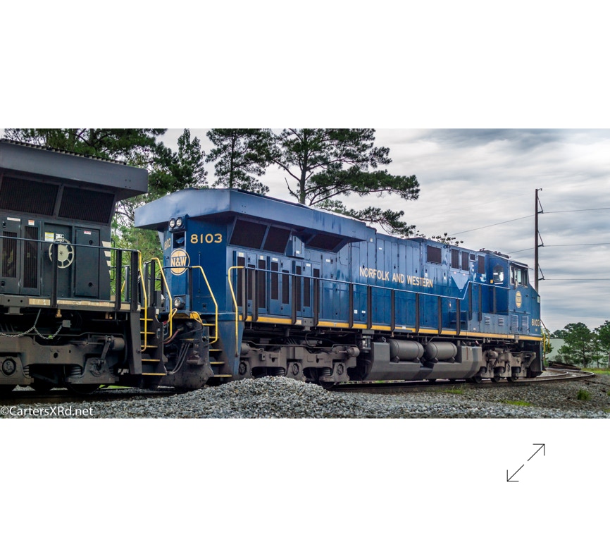 Norfolk Southern did a salute some years ago to all the railroads which were absorbed into Norfolk Southern over the years. They painted a locomotive in the colors of the old railway. The Norfolk & Western commemorative visited Chocowinity June 23. Norfolk and Western was the result of more than 200 railroad mergers between 1838 and 1982 when it became part of Norfolk Southern Railway. 8103 is a 2012 GE ES44AC. There is a small gallery of stills here as well as a short video. Scroll down for slideshow.
