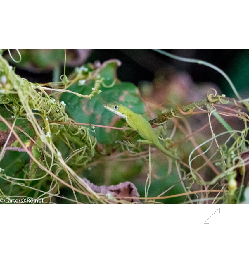 We’ve got a couple of sliders who visit us on the pier. Kitty started bringing a snack for them when we alight there-sometimes fruit or maybe just some stale bread. These photos are from a day with some shrimp scraps. I really enjoyed the way the water plays over the turtle’s head as he investigates the menu. There is also an anole, a skink, and a brim in this set. Week 32 was August 4-10.