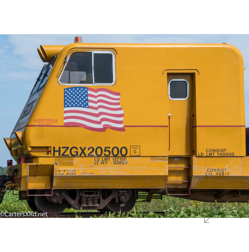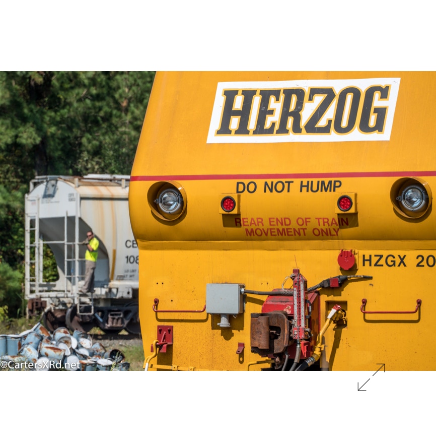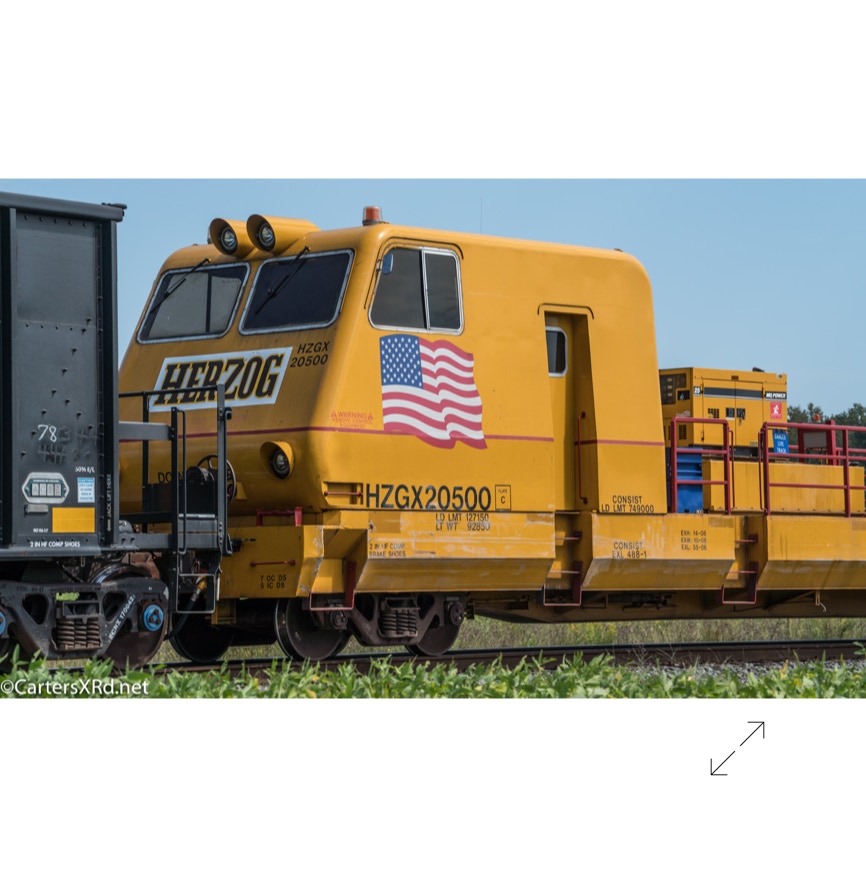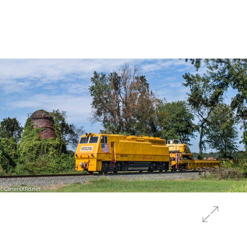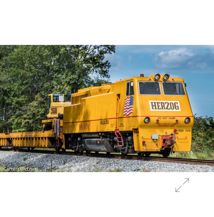 The W-Line between Chocowinity and Aurora is being redone. A Herzog train was enlisted to place plates and spikes. The flashy, caterpillar look-alike arrived during Week 39. It was quite the fresh toy to see around the county.